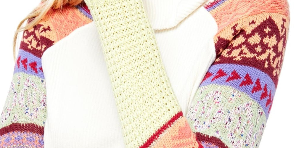 Camiseta feminina estampada de manga comprida e gola alta Free People, tamanho médio, branca