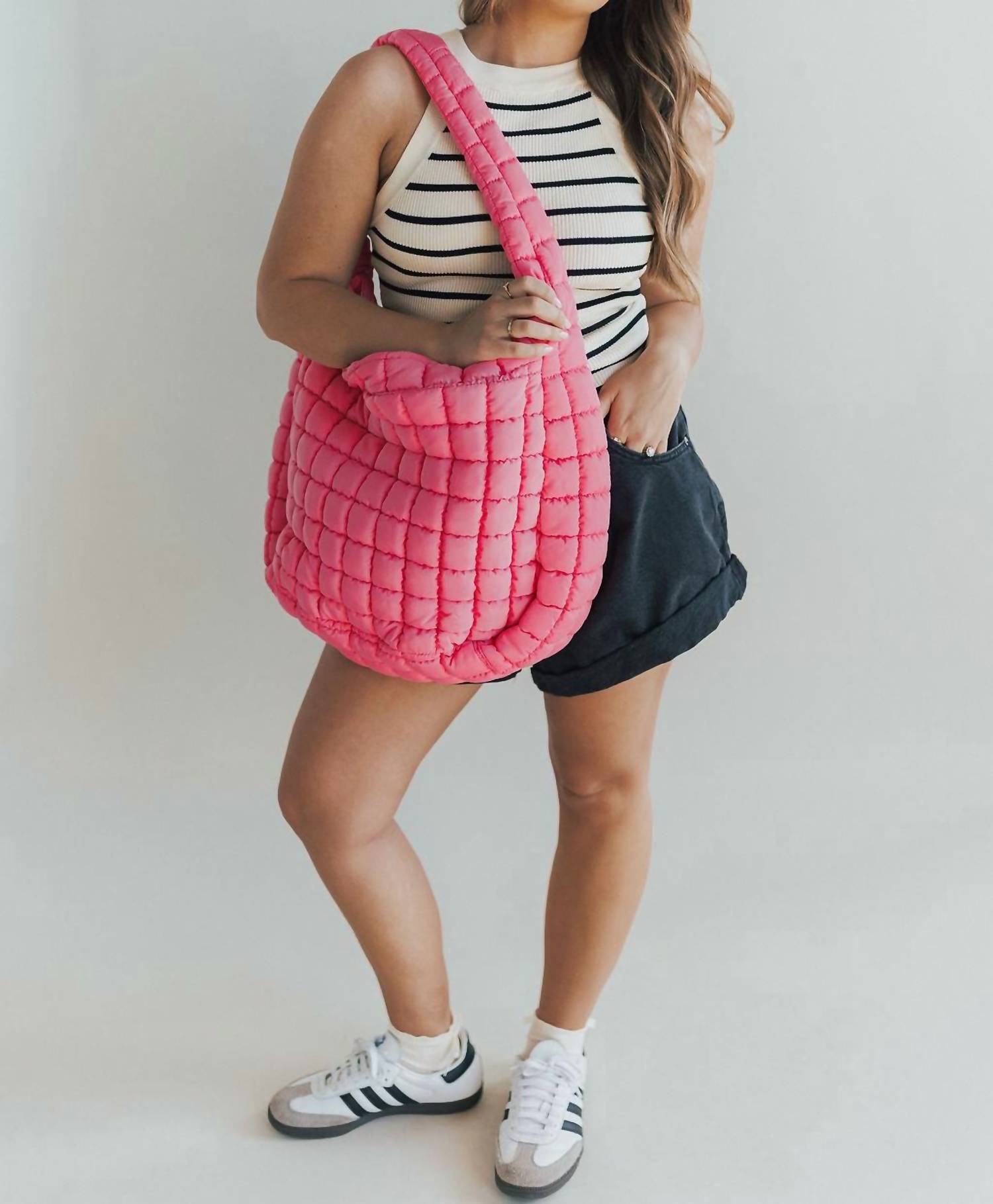 Apresentamos a Bolsa Feminina Acolchoada da Free People, seu acessório indispensável na vibrante cor Bubblegum para transições tranquilas da academia para o estúdio. Esta bolsa leve e despojada possui um tecido acolchoado com fecho de zíper na parte superior e alça de ombro fixa para maior praticidade. Possui amplo espaço interno, bolsos externos e detalhes com o logotipo da Buti. Cuidados: Limpe a bolsa com um pano úmido e deixe secar naturalmente. Dimensões: 43 cm de comprimento, 35 cm de altura, 16 cm de profundidade e 38 cm de altura da alça.