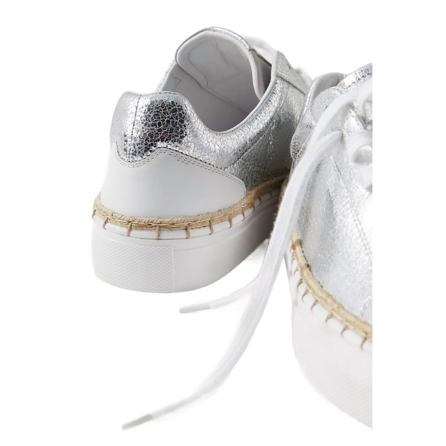 Bonitos, funcionais e confortáveis. Estes tênis atendem a todos os requisitos. Apresentamos o Tênis Feminino Scotty da Free People, um tênis de cano baixo e elegante, na cor prata, projetado para uso versátil. Confeccionado com cabedal de couro com acabamento manual, este tênis apresenta uma tira contrastante no calcanhar e costuras inspiradas em alpargatas para um toque moderno. O solado é de borracha e o fechamento é por cadarço, proporcionando estilo e conforto. Fabricado no modelo importado, este tênis possui salto de 2,5 cm e plataforma, tornando cada passo elegante e sem esforço.