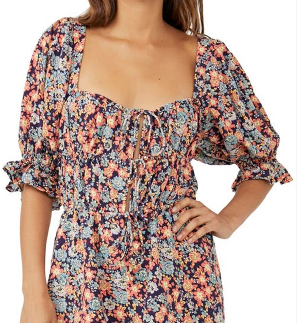 Macacão feminino Show Me Love em mistura de linho azul, tamanho X-S