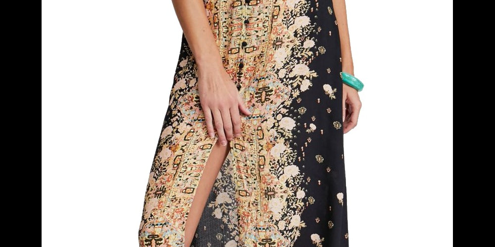 Vestido longo estampado sem mangas feminino Free People, preto, tamanho XS