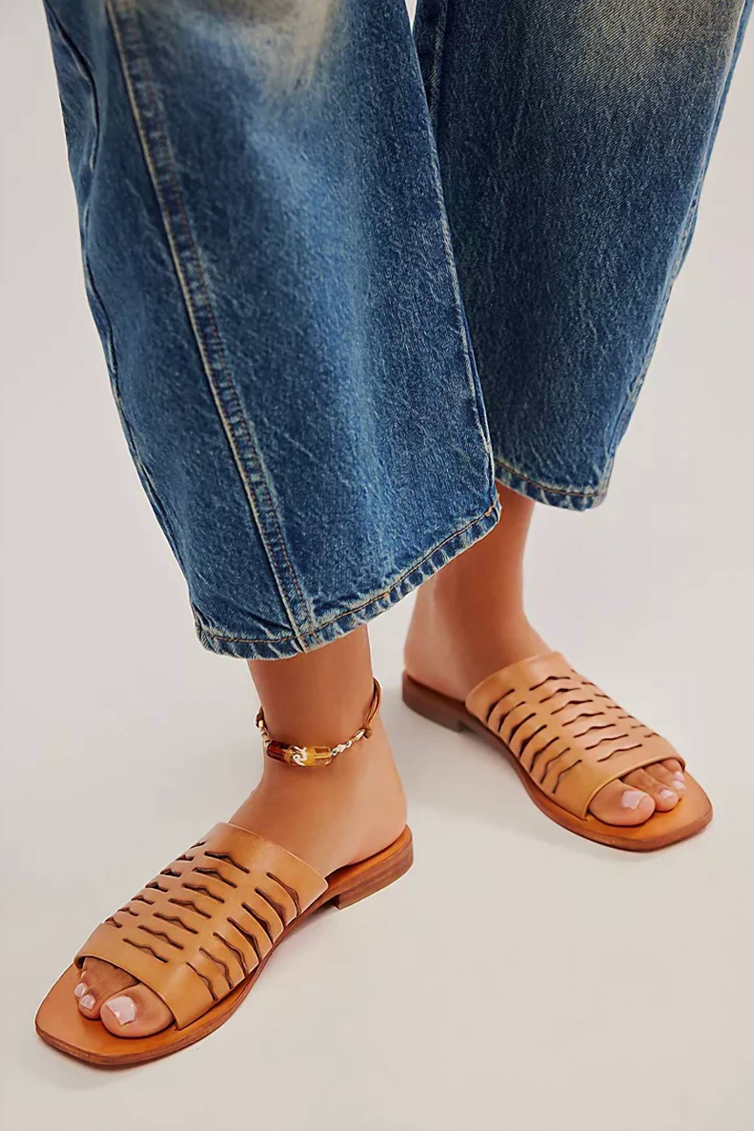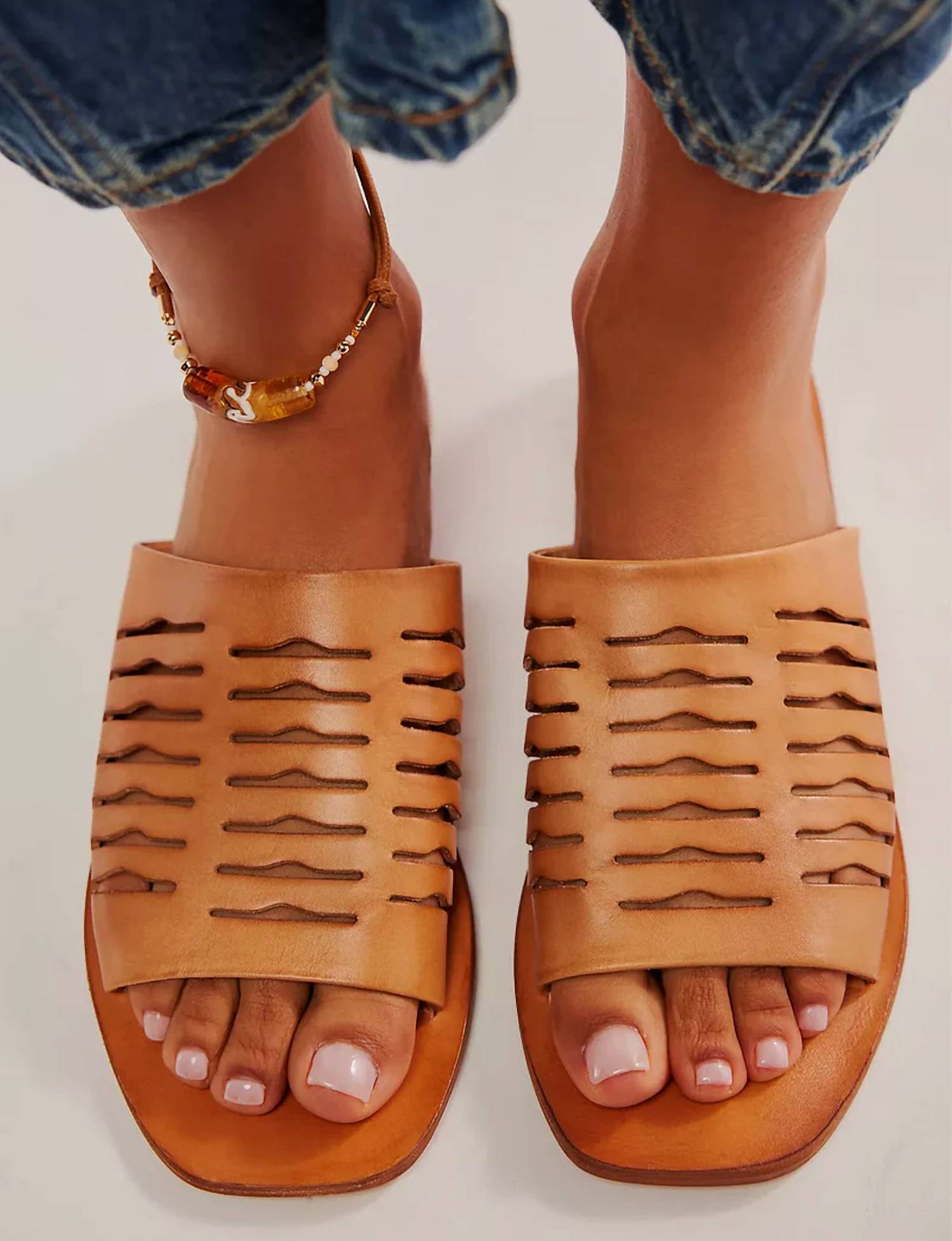 Clássico e fofo, perfeito para usar o dia todo. Adoramos esta sandália. Descubra a Sandália Feminina Slice Of Sun da Free People, uma adição estilosa ao seu guarda-roupa de verão. Com uma tira grossa e fatiada na ponta para textura, estas sandálias apresentam um design leve, sem cadarço e sem costas. Confeccionadas em couro premium na cor vachetta, elas apresentam bico quadrado aberto, sola plana e salto mini para maior conforto. Ideais para uma elegância descontraída, estas sandálias prometem estilo e conforto sem esforço.