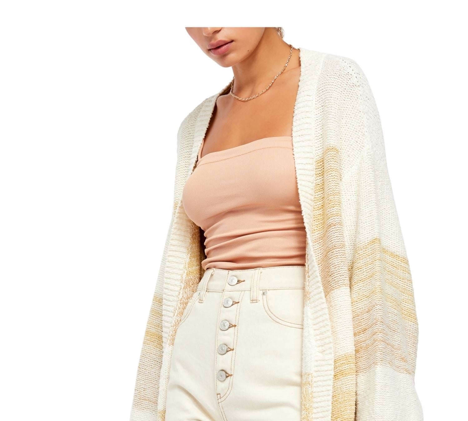 DescriçãoGrandes listras estáticas estampam um cardigan aconchegante de mistura de algodão, perfeito para vestir antes de passear pelo píer. | Comprimento de 76 cm (tamanho médio) | Fecho de botão frontal | Decote em V