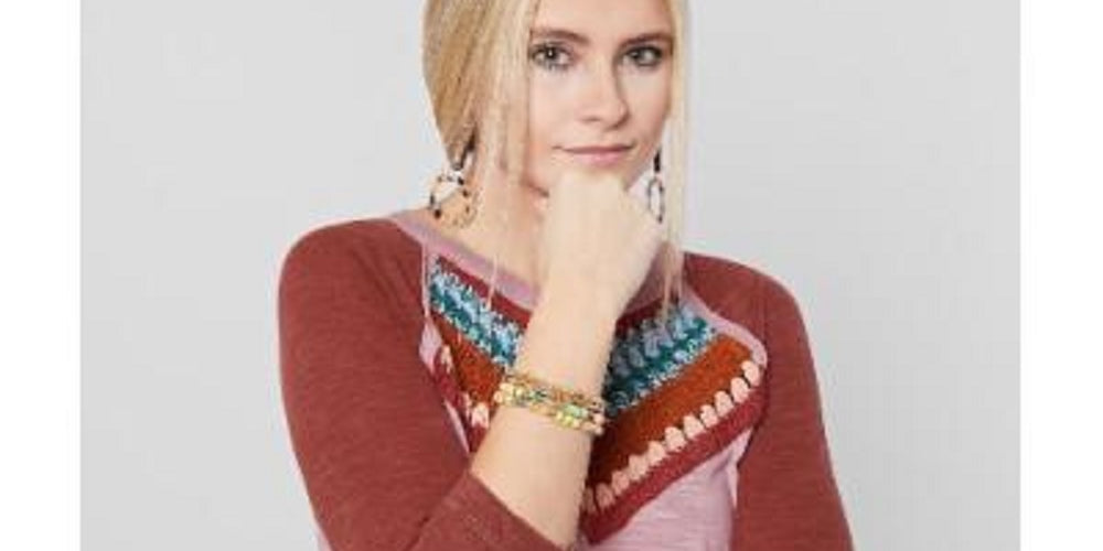 Blusa de crochê com jugo para mulheres Free People, rosa, tamanho grande