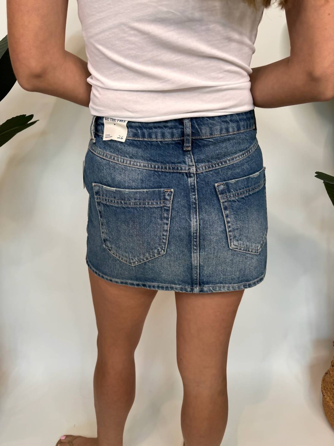 Vista sua camiseta favorita para um visual mais descontraído. Eleve seu visual com a Saia Jeans Wynne da Free People, uma peça essencial, divertida e chique, em um tom de centáurea encantador. Esta minissaia apresenta um design de cintura média com silhueta envolvente assimétrica e fecho prático com botões laterais. Confeccionada em 100% algodão, garante conforto e estilo, com bolsos para maior praticidade. Cuide desta peça sem esforço: lave à máquina em água fria e seque em temperatura baixa. Alyssa tem 1,78 m e veste tamanho 26.