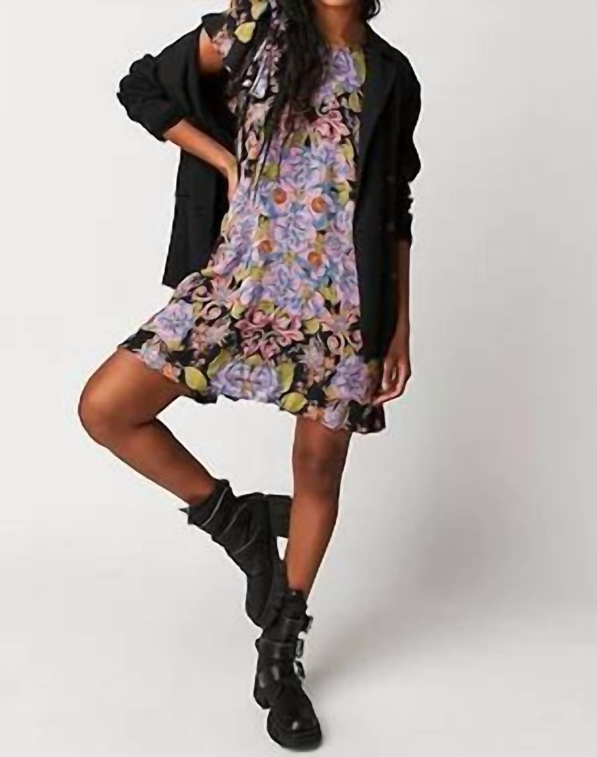 Este minivestido apresenta uma estampa floral clássica, caimento solto e sem forma, com mangas bufantes franzidas para maior dimensão. Decote redondo, bolsos laterais, mangas bufantes e fecho de zíper nas costas. 100% viscose.