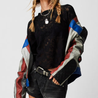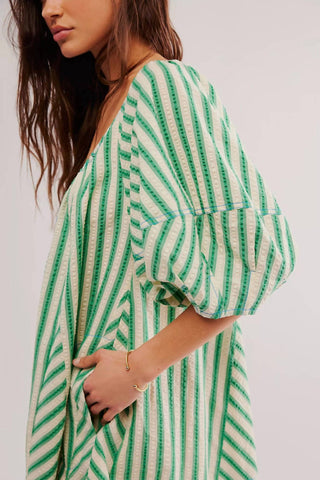 Free People - Camisa listrada grande com botões Varsity Vibes