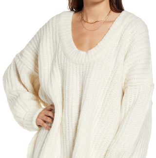 Suéter feminino Free People Blue Bell com decote em V, bege, tamanho extrapequeno