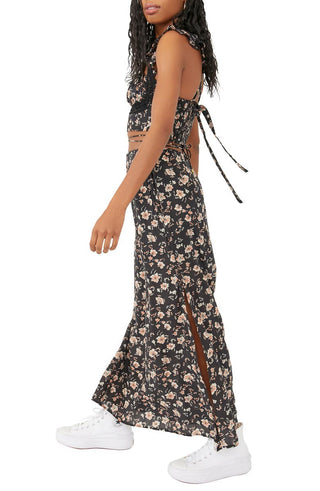 Top curto floral e saia longa femininos Free People, preto, tamanho 4