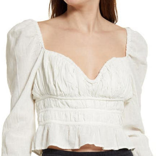 Blusa de algodão com gola alta Chloe Smocked da Free People para mulheres, branca, tamanho médio