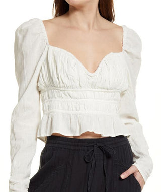 Blusa de algodão com gola amarrada Chloe Smocked feminina Free People, branca, tamanho X-S