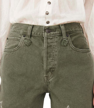 Shorts jeans rasgado e cortado Makai feminino da Free People, verde, tamanho 30