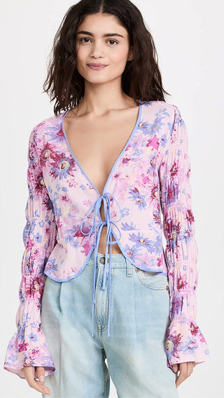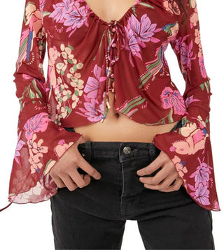 Blusa floral com manga sino e estampa de paraíso feminina Free People, rosa, tamanho pequeno