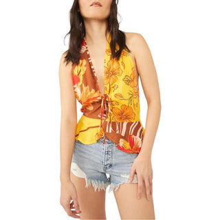 Camiseta regata Hot Tropics feminina Free People amarela tamanho grande