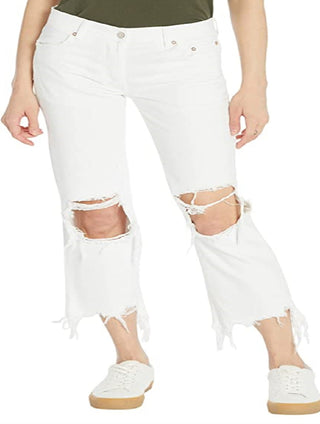 Calça feminina Maggie cintura média perna reta branca tamanho 26