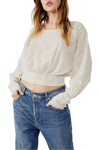 Blusa feminina de algodão bordado Temecula da Free People, branca, tamanho médio