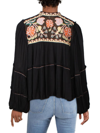 Blusa feminina com estampa Hilary e decote vazado, preta, tamanho médio, da Free People