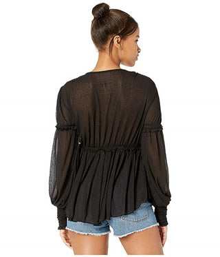 Blusa curta Roma Smocked feminina Free People, preta, tamanho grande