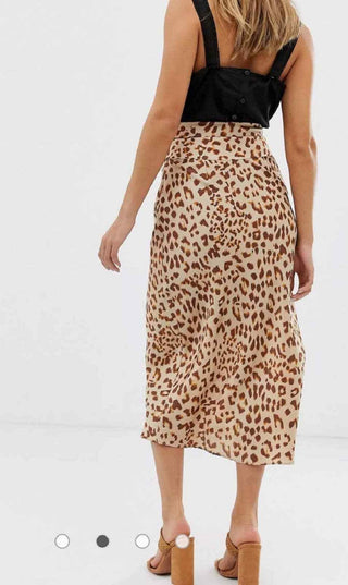 Saia midi com estampa de leopardo Normani da Free People, corte enviesado, marrom, tamanho 12