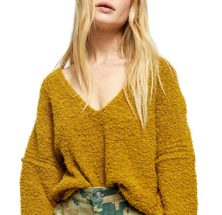 Suéter feminino Free People Finder Keepers com decote em V, verde, tamanho pequeno
