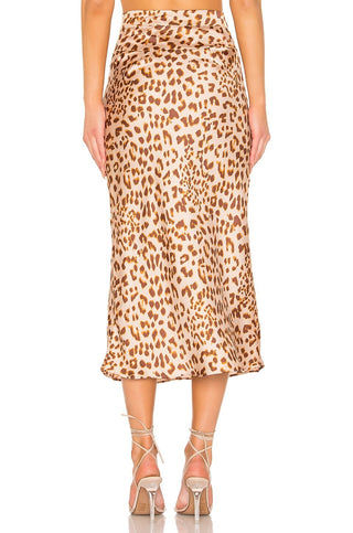 Saia midi com estampa de leopardo Normani da Free People, corte enviesado, marrom, tamanho 6