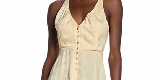 Vestido de coquetel feminino Free People, liso, sem mangas, decote em V, comprimento chá, cintura império, amarelo, tamanho pequeno
