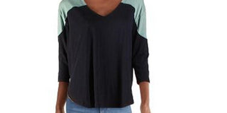 Blusa feminina Free People com manga 3/4 e decote redondo, azul, tamanho extragrande