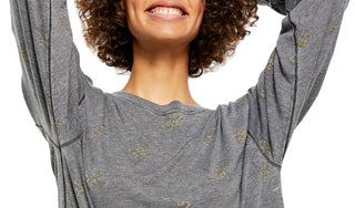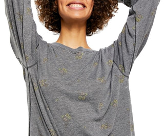 Camisetas femininas Free People Camo Arielle Manga Longa Cinza Tamanho Médio