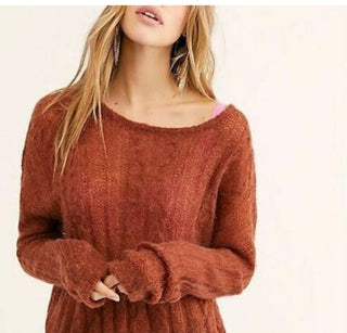 Blusa feminina de manga comprida e decote redondo Free People, marrom, tamanho pequeno