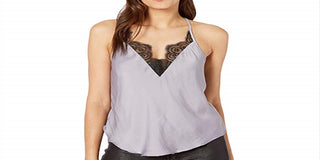 Regata feminina de renda com alças finas e decote em V, roxa, tamanho médio