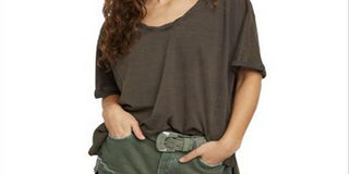 Camiseta feminina Free People com manga curta e ombro de fora, cinza, tamanho extragrande