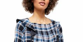 Blusa feminina Free People com babados, recortes franzidos, manga comprida, gola quadrada, azul, tamanho grande