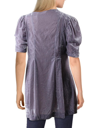 Túnica feminina Adelle Velvet com manga bufante e decote em V profundo, amarrada na frente, roxa, tamanho médio