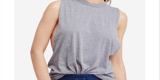 Top curto feminino Free People com decote redondo e recortes, cinza, tamanho grande