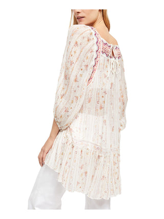 Blusa feminina estampada de manga comprida e gola alta, tamanho médio, branca, da Free People