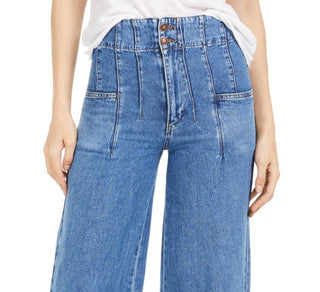 Calça jeans feminina Midnight City Denim cintura alta perna larga azul tamanho 29 da Free People
