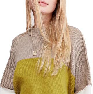 Suéter feminino de manga comprida com blocos de cores Free People, verde, tamanho grande