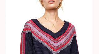 Blusa térmica feminina Free People Santa Clara com estampa de gola V, rosa, tamanho X-S