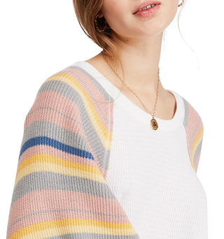 Blusa de malha Rainbow Dreams feminina Free People, branca, tamanho grande