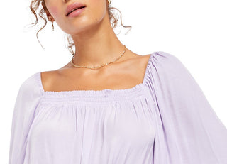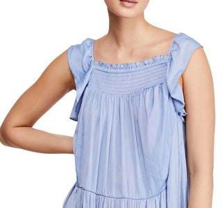 Blusa peplum com decote reto e manga curta feminina da Free People Want Your Love, azul, tamanho pequeno