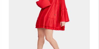 Vestido curto feminino com manga sino FREE PEOPLE, vermelho, tamanho médio