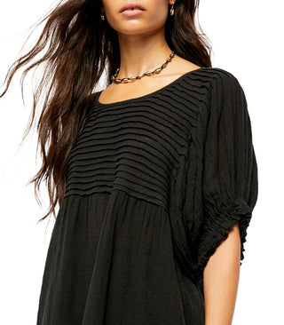 Blusa plissada com decote em v e manga bufante Free People para mulheres, preta, tamanho médio