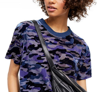 Camiseta feminina camuflada de manga curta e gola redonda Free People, azul, tamanho médio