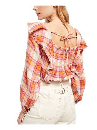 Blusa feminina xadrez Siena com decote quadrado, marrom, tamanho extrapequeno, da Free People