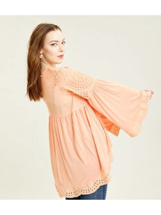 Blusas femininas Free People Blush Sun Eyelet Sea of Love Manga Sino Blush Tamanho Grande