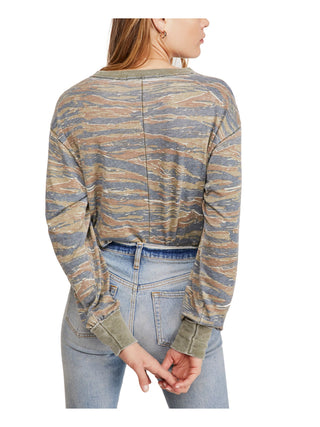 Blusa camuflada feminina Free People, manga comprida, gola redonda, verde, tamanho pequeno