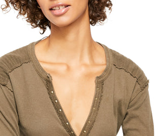 Free People Feminino Militar Mix Henley Tamanho Verde Tamanho Médio