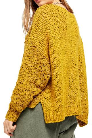 Suéter feminino Free People Textu manga comprida gola V amarelo tamanho M