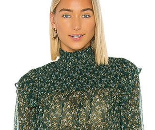 Free People Feminino Verde Estampado Manga Longa Gola Mandarim Peplum Verde Tamanho P