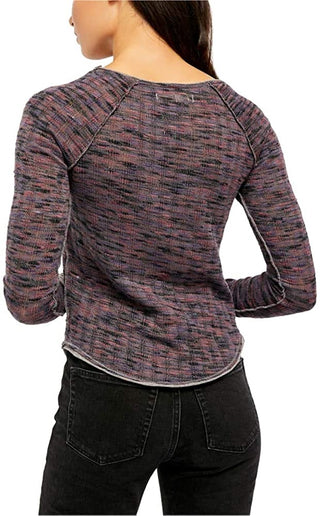 Camisa de malha feminina Free People Spaced Out, azul marinho, tamanho X-S